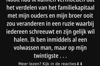 s Avonds sprak ik hem erop aan, en hij gaf toe dat hij een DNA-test had laten doen toen Fleur vier maanden oud was. De test bewees dat Fleur zijn dochter was. Mijn man besloot mij hier nooit over te vertellen. Toen begreep ik ineens waarom zijn houding zo drastisch was veranderd. Stiekem had ik gehoopt dat hij gewoon verliefd was geworden op onze dochter, maar het bleek om iets heel anders te gaan. Het voelde als een klap in mijn gezicht; ik voelde me vernederd en alsof er een berg vuil over me was uitgestort. Hoe kon hij denken dat ik ontrouw washij vertrouwde me niet eens. Hoe kun je verder samenleven als iemand zo weinig vertrouwen in je heeft? Vandaag is het Fleur, maar wat als het een volgende keer over iets anders gaat en hij weigert naar mij te luisteren?